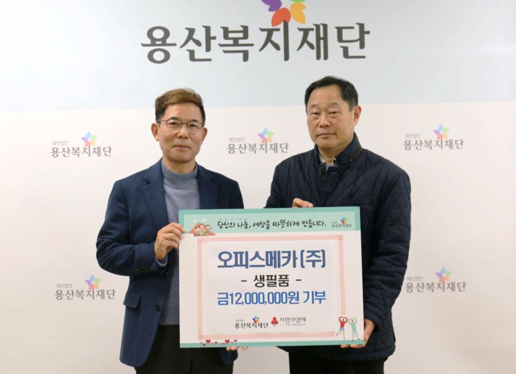 [아시아경제 박종일 기자] 오피스메카(대표 김서진)가 5일 용산복지재단(이사장 승만호)에 1200만원 상당 생필품 지원을 약속했다.