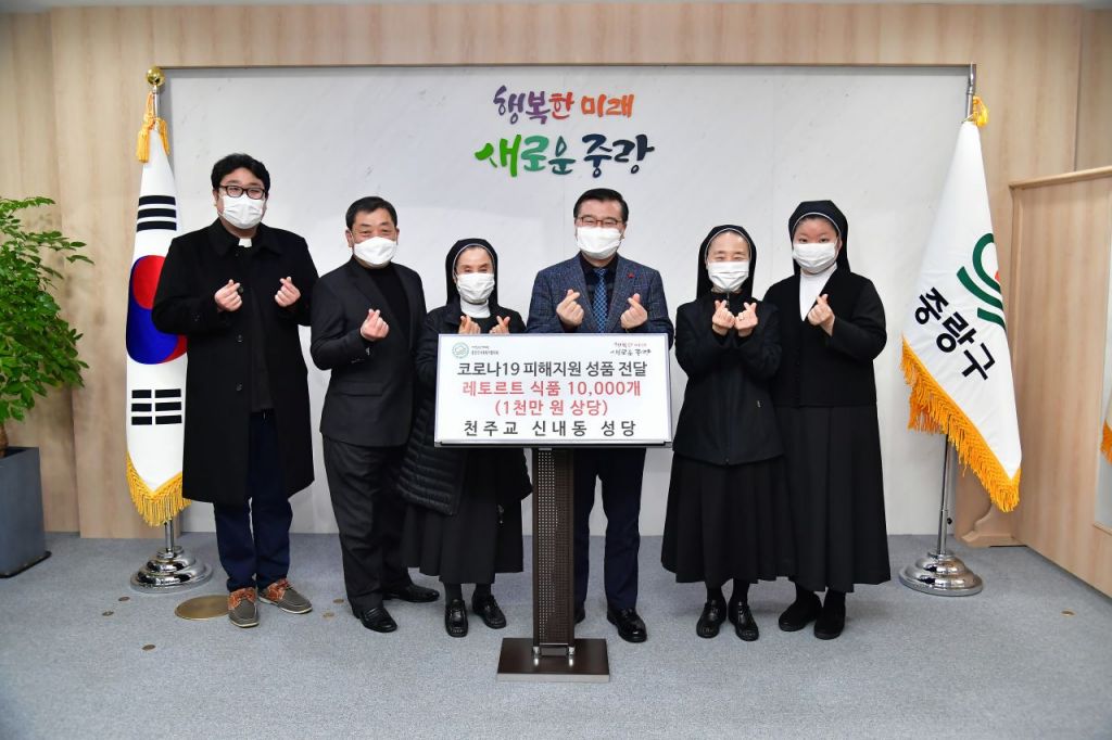코로나19를 함께 이겨내려는 ‘중랑구 천주교 신내동 성당’과 ‘면목본동 주민자치회’의 마음이 중랑구청에 릴레이로 전달됐다.