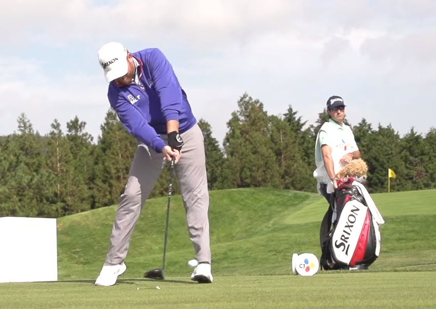 PGA투어 장타자 중 한명인 J.B. 홈즈 선수가 한 국내대회에서 드라이버로 공을 타구하는 순간의 모습. 출발각이 12도 인지는 확인되지 않았지만, 출발각이 상당히 낮은 것으로 보입니다. [사진=유튜브 화면캡처]