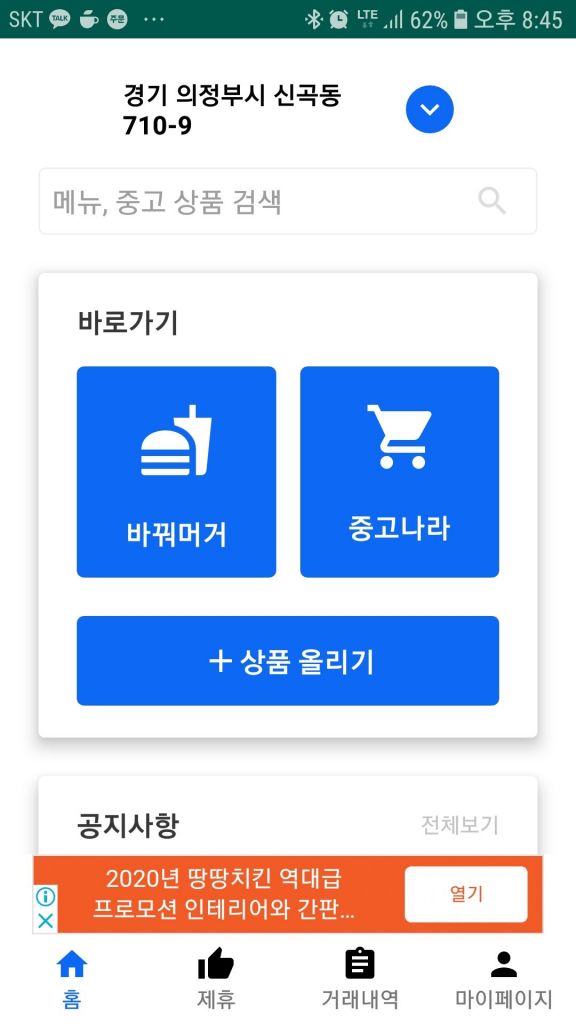 또한 위치기반으로 중고거래를 바로 바로 할수 있는 마켓이 함께 탑재되어 있어 주변에서 판매하는 것 들을 사고 팔수 있으며, 음식의 교환은 직접 할수도 있고 서로 배달 대행을 이용하여 주고 받을수 있고 내 음식을 올리거나 올라가 있는 음식을 골라서 간단한 채팅을 통해 교환도 진행할 수 있다.