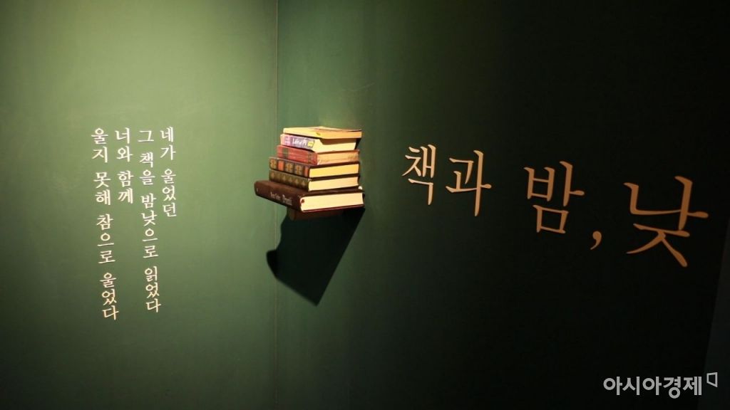 입구 왼편에 있는 책장에는 시집, 소설책 등 판매 중인 도서들이 나열돼 있다. 판매하는 책은 상하지 않도록 포장지로 싸여있고, 미리 읽어볼 수 있는 책은 따로 갖춰놔 부담 없이 책을 볼 수 있다. 판매하는 책들이 많지는 않지만 박 대표가 소개하고 싶은 책들로 책장을 꾸몄다. 한쪽에는 '책 메뉴판'도 보인다. 고르고 골라 전시해 놓은 책 중에서도 추천하고 싶은 책을 소개하는 코너다. 책장 중앙에는 배우 박정민의 공간이 마련돼 있다. 그가 출연한 작품 '동주', '시동' 등과 관련된 서적들이 배치돼 있고, 그의 사진과 팬들이 흔적을 남길 수 있는 방명록도 놓여 있다.