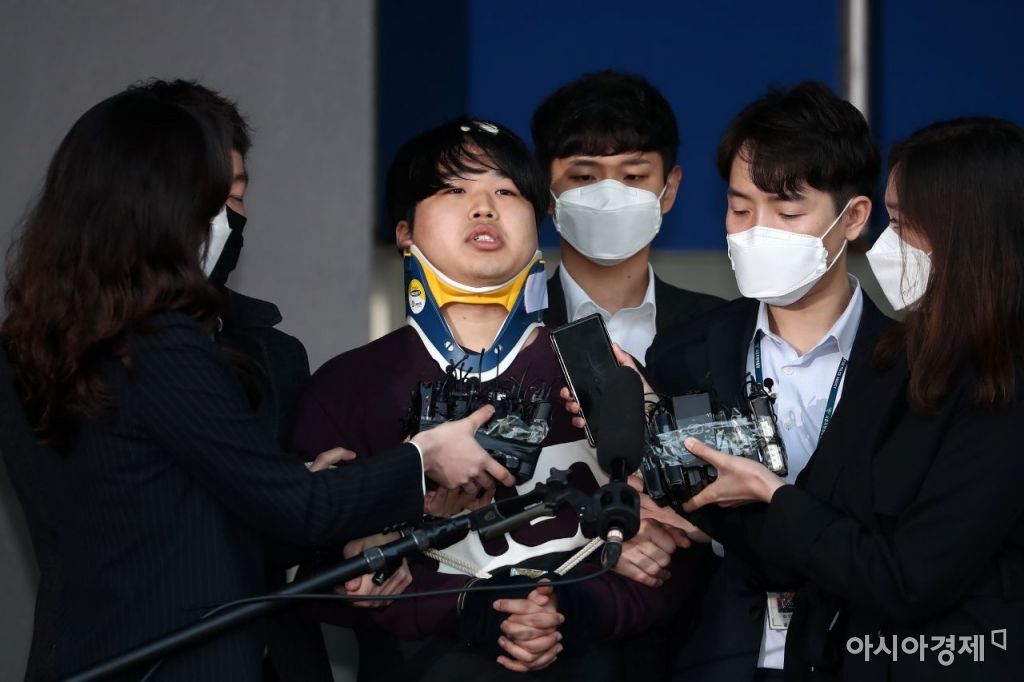 인터넷 메신저 텔레그램에서 미성년자 등 수십 명의 여성을 협박, 촬영을 강요해 만든 음란물을 유포한 '박사방' 운영자 조주빈씨가 25일 오전 서울 종로경찰서에서 검찰로 송치되기 위해 나오고 있다./사진=문호남 기자munonam@asiae.co.kr