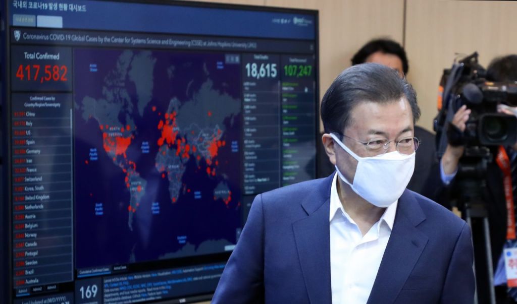 문 대통령은 "확진자 한 명을 빠르게 찾아내는 일은 확진자의 생명을 구하는 일이며, 방역의 시작"이라며 "한국은 빠른 검사와 빠른 확진, 빠른 격리와 빠른 치료에 더해서 세계에서 가장 높은 검사의 정확도까지 방역에 성과를 내고 있다"고 평가했다.