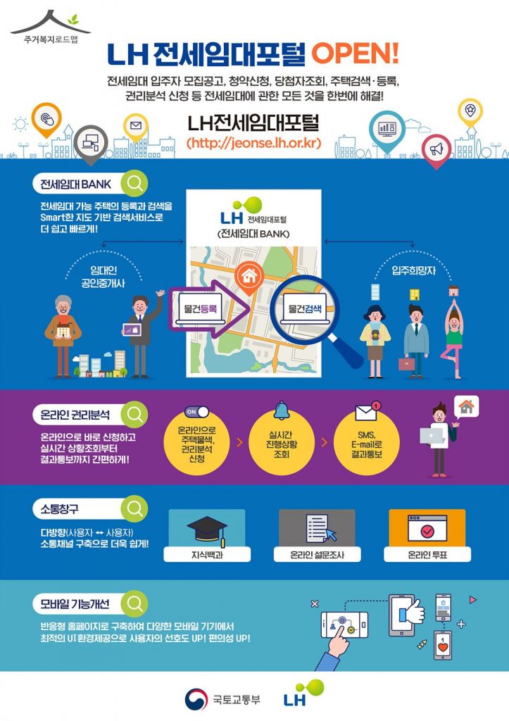LH 관계자는 “집 문제로 고민하는 국민들의 걱정을 덜어 줄 수 있도록 전세임대 관련 맞춤정보 제공을 확대하겠다”며“홈페이지 활성화를 통해 취약계층 주거안정 강화에 더욱 힘쓸 것”이라고 말했다.