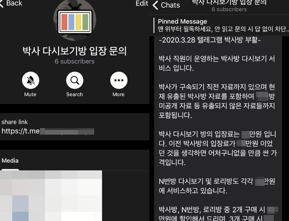 그러면서 "이전 박사방과는 달리 저희 다시보기방은 신분 인증이 일체 없습니다"라며 "저희 방은 구매자의 신원 보호를 최우선으로 하며, 결제수단도 계좌이체나 문상(문화상품권)이 아닌 OOOO캐시, 또는 △△△만 받고 있습니다"라고 설명했다.