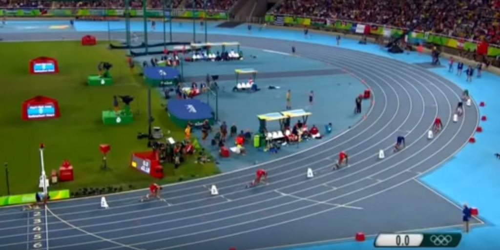 육상 200m 달리기의 출발선 모습. 각 레인 간 거리 차가 크지 않습니다. [사진=유튜브 화면캡처]