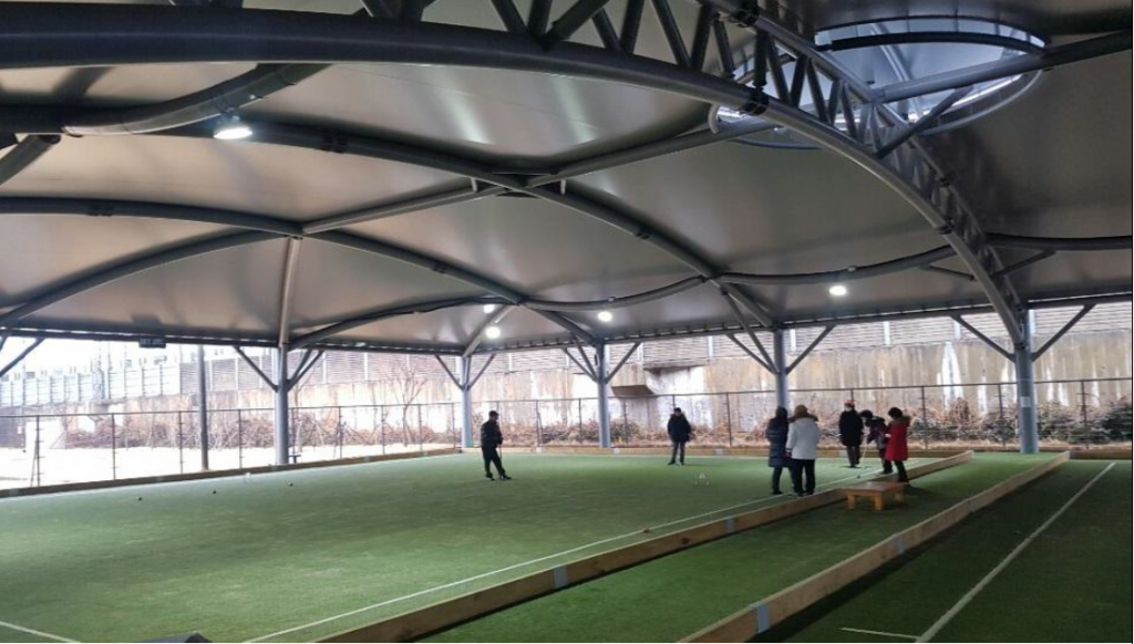 이에 따라 구는 임시휴관중인 지난 2월에 어르신들이 궂은 날씨와 동절기에도 게이트볼장을 이용할 수 있도록 다락원체육공원의 야외 게이트볼장 측면에 전동식 개폐시설을 설치완료했다.