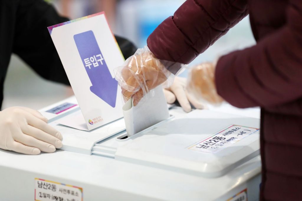 제21대 국회의원 선거 사전투표 마지막 날인 지난 11일 오전 대구 중구선관위에 마련된 남산2동 사전투표소에서 한 유권자가 소중한 한 표를 행사하고 있다./사진=연합뉴스
