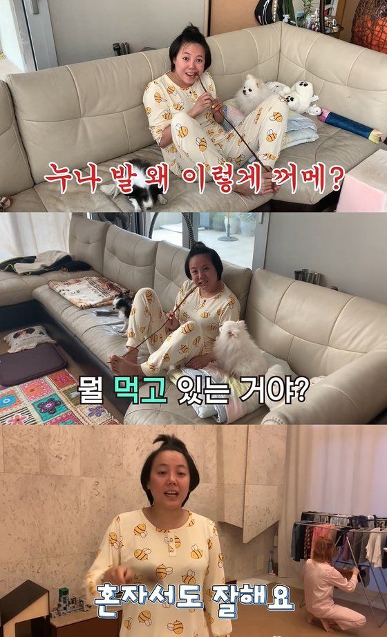 공개된 영상에는 고은아가 잠옷을 입고 머리를 질끈 묶은 편안한 모습으로 등장해 눈길을 끌었다. 그는 청소기로 집을 청소하며 미르의 눈치를 보거나, 소파에 앉아 문어 다리를 뜯어 먹는 등 털털한 모습을 보여 웃음을 안겼다.