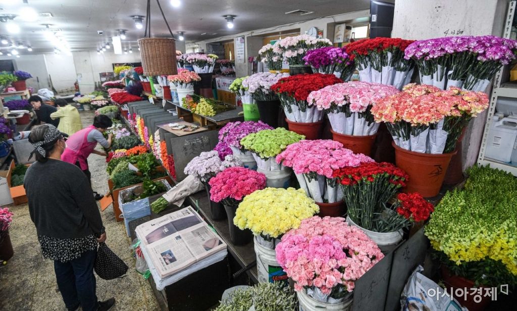 어버이날을 하루 앞둔 7일 서울 강남꽃도매상가에서 형형색색 카네이션이 진열되고 있다./강진형 기자aymsdream@
