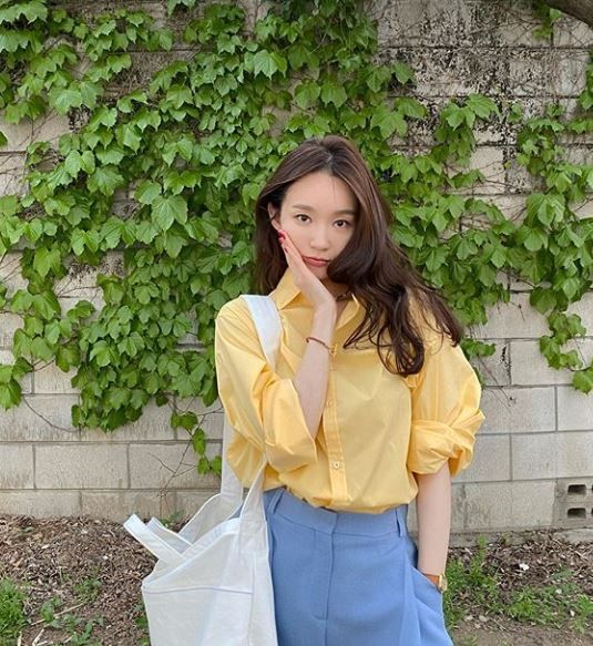 공개된 사진 속 강민경은 노란색의 셔츠와 파란색 와이드 팬츠를 입고 거리를 걷고 있다. 특히 선명한 색감의 노란색 셔츠가 상큼한 레몬을 연상하게 해 눈길을 끈다.