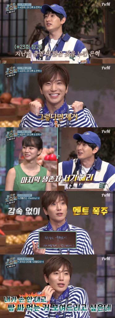 은혁이 "필요한 인원만 딱 있으면 될 것 같다"고 말하자, 패널들은 누군지 궁금해하며 알려달라고 했다. 그러자 은혁은 "일단 붐은 저 자리를 지켜야 할 것 같고, 경로 우대 느낌으로 MC 신동엽도 있어야 할 것 같다. 그리고 문제 맞추고 정리하는 건 사실 한사람만 있어도 된다. 혜리만 있으면.."이라고 말해 나머지 선택되지 않은 패널들을 주눅들게 만들었다.