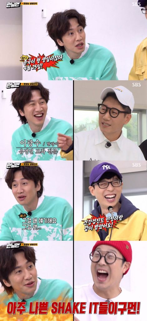 이날 제작진은 '산중호걸 호랑님 생일잔치 레이스'를 할 것이라고 발표했다. 그러자 이광수는 "아, 종국이형 생일이잖아. 4월 25일!"이라고 말했고 나머지 멤버들은 "아하~"라며 고개를 끄덕였다. 그러나 지석진은 "그런 거 다 기억하고 살려면 살기 힘들겠다"라고 핀잔을 줬다.