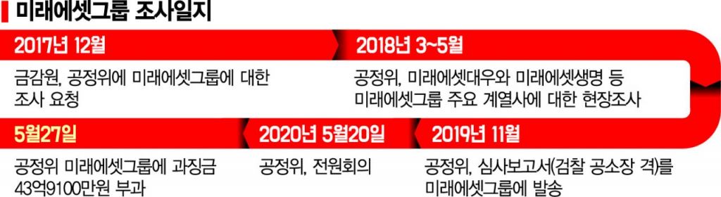 공정위는 미래에셋그룹의 사익 편취, 일감 몰아주기와 박 회장 중심의 지배구조 등을 문제 삼았다. 박 회장 일가가 91.86%의 압도적인 지분을 들고 있는 미래에셋컨설팅에 그룹 내 일감과 운영 수익 등 이권을 몰아줬다고 보고 조사를 진행했다.