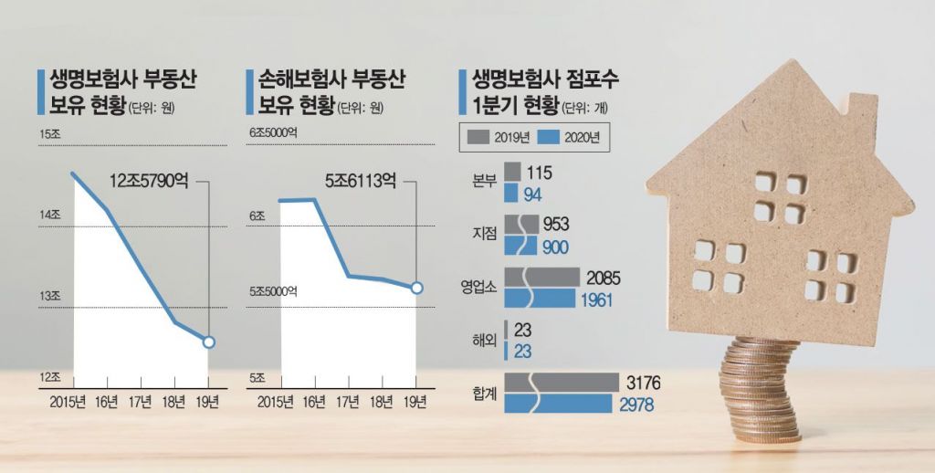 부동산 자산규모도 2015년 20조8062억원에서 지난해 말 18조1903억원으로 12.5%나 줄었다. 2022년 도입되는 새 국제회계기준(IFRS17)과 신지급여력제도(K-ICS)에 앞서 재무적 부담을 줄이는 한편 현금 유동성을 확보해 업황 부진에 대응하겠다는 고육지책이다.