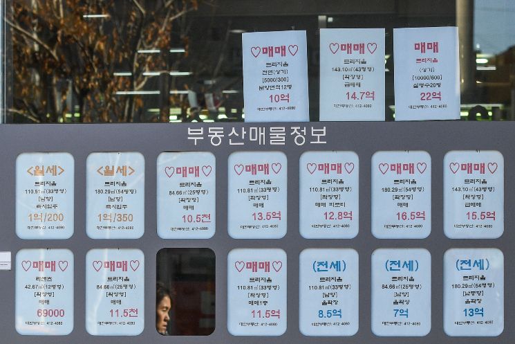 서울 송파구 한 부동산중개업소 밀집상가에 부동산 매매 및 전월세 가격이 붙어 있다./강진형 기자aymsdream@