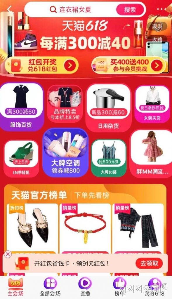 [아시아경제 베이징=박선미 특파원]"300위안어치 사면 40위안 할인" "618 특별 할인가" "618 기념 1+1 행사"
