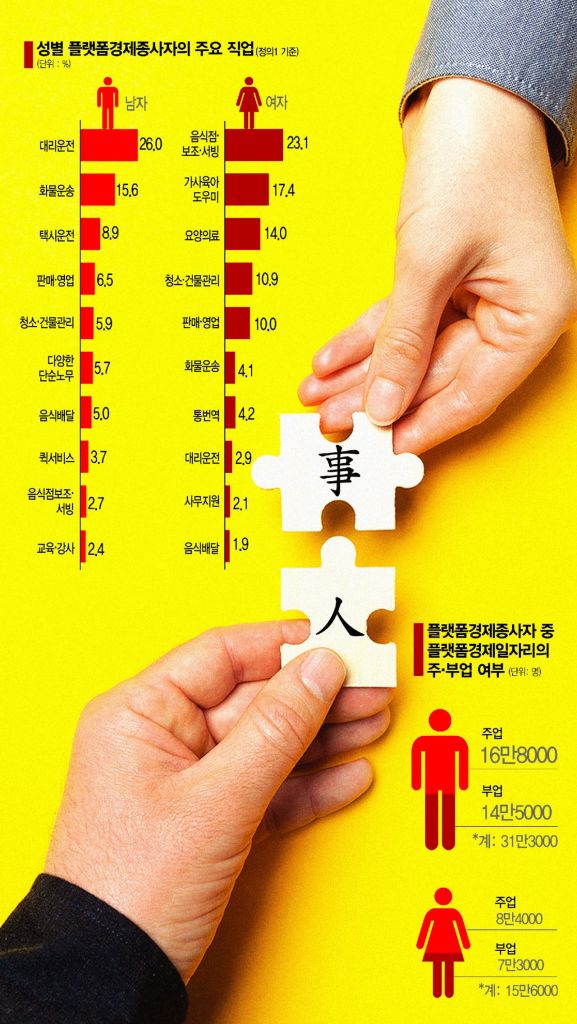 플랫폼 노동은 디지털 플랫폼의 중개를 통해 개인이 서비스를 제공하고 보수를 받는 일거리를 말한다. 플랫폼으로 돈을 버는 사람이 늘면서 영역도 확장하고 있다. 배송, 운전, 청소 업무 등 대면 서비스를 제공하는 '긱 워커(Gig worker)'부터 IT나 디자인, 개발, 회계, 컨설팅 등 기술과 콘텐츠로 수익을 내는 웹 기반 노동을 제공하는 프리랜서들까지 다양하다.