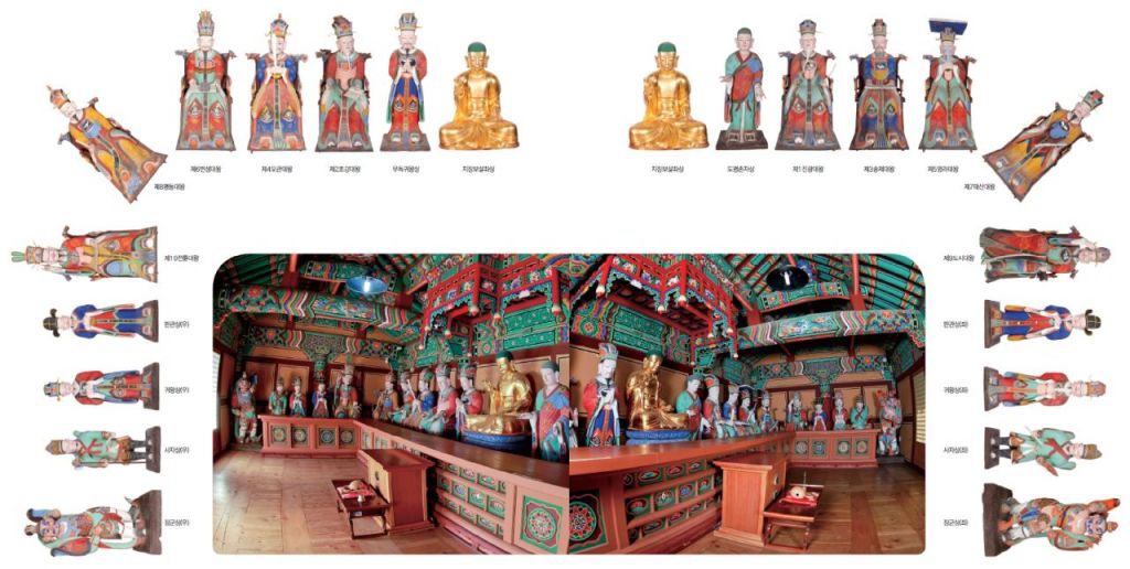 전남도 유형문화재 제340호로 지정된 ‘불갑사 명부전 목조 지장보살삼존상과 시왕상 일괄’은 17세기 대표적인 조각승 무염(無染) 등 17명이 참여했다.