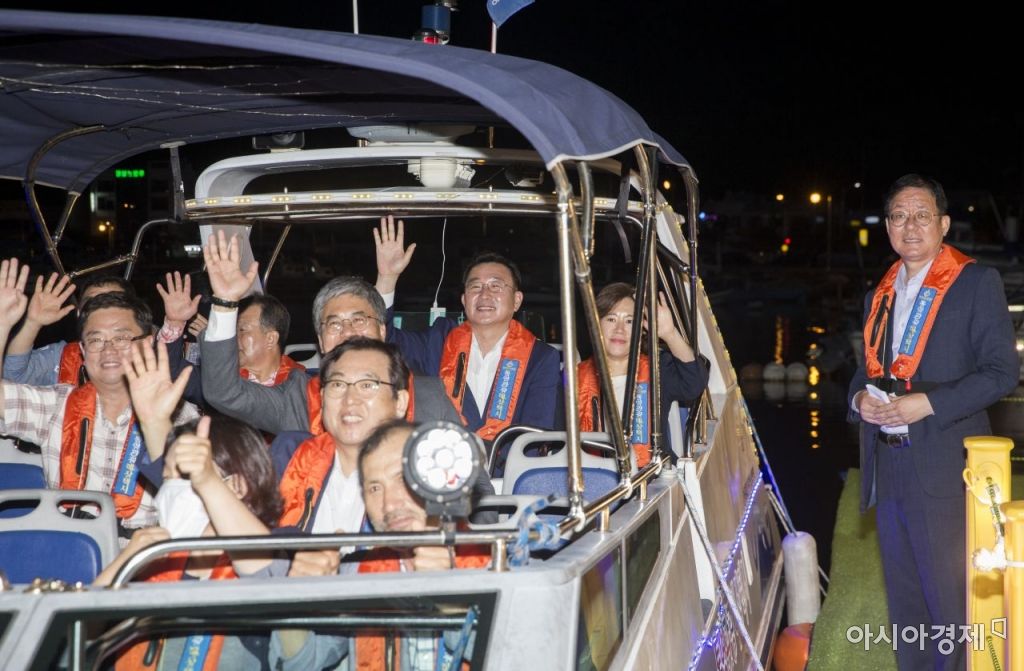 경남 통영 관광선포식을 마치고 도남동 해양스포츠센터에서 야경투어를 하고 있다.(사진=통영시)