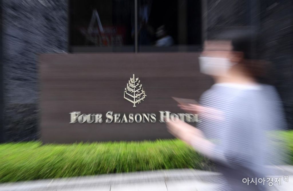 서울 광화문에 위치한 포시즌스호텔 서울에서 신종 코로나바이러스 감염증(코로나19) 확진자가 발생했다. 포시즌스호텔은 26일 사우나 남탕에 근무하는 직원이 지난 25일 코로나19 확진 판정을 받았다고 밝혔다. 호텔 측은 사우나를 이용한 회원들을 확인하고 있으며 임시 폐쇄 여부를 검토 중이다. 사진은 이날 포시즌스호텔 모습./김현민 기자 kimhyun81@