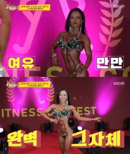 28일 오후 방송된 KBS 2TV '사장님 귀는 당나귀귀'(당나귀)에<br /> 서는 헬스 트레이너로 전직한 최은주가 피트니스 대회에 등장하는 모습이 전파를 탔다./사진=KBS 2TV '사장님 귀는 당나귀귀' 방송 화면 캡처