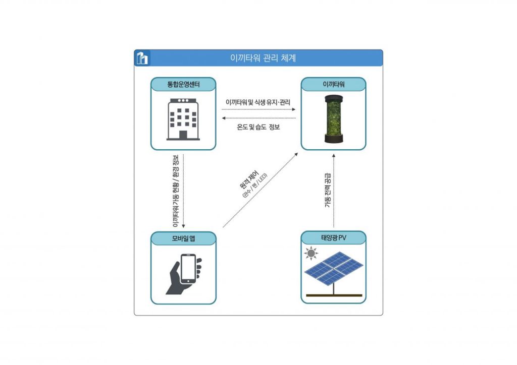 또 자동관수시스템을 통해 이끼에 필요한 수분을 공급하며, 실시간 기후정보 등과 연계해 관수가 작동되도록 연계했다. 그 외에도 스마트 미세먼지 저감 이끼타워 시스템의 실시간 정보가 클라우드를 기반으로 관리되며, 스마트시티 운영센터와 스마트폰 앱으로도 원격자동제어가 가능하도록 설계돼있다.