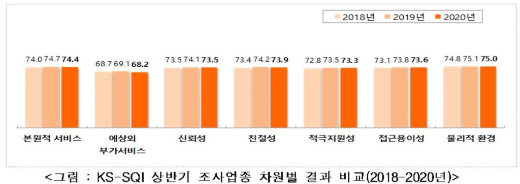 처음 조사가 시작된 2000년 이래 KS-SQI는 글로벌 금융위기로 경제 침체를 겪었던 2000년대 후반을 제외하고 꾸준한 상승세를 이어왔으나 올해는 대다수 기업들이 신종 코로나바이러스감염증(코로나19)으로 소비 전반이 위축되며 고객 서비스도 영향을 받았다. KS-SQI 점수 73.4점은 2016년 수준으로 회귀한 것으로 상승세가 주춤한 모습이다.