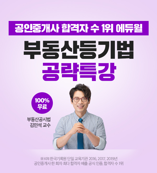 이번 특강은 공인중개사 각 과목별 대표 교수의 강의를 체험할 수 있도록 무료로 공개하는 에듀윌 릴레이 특강의 하나로, 최근 부동산공시법 기출문제를 분석한 결과를 바탕으로 마련된 것이다.