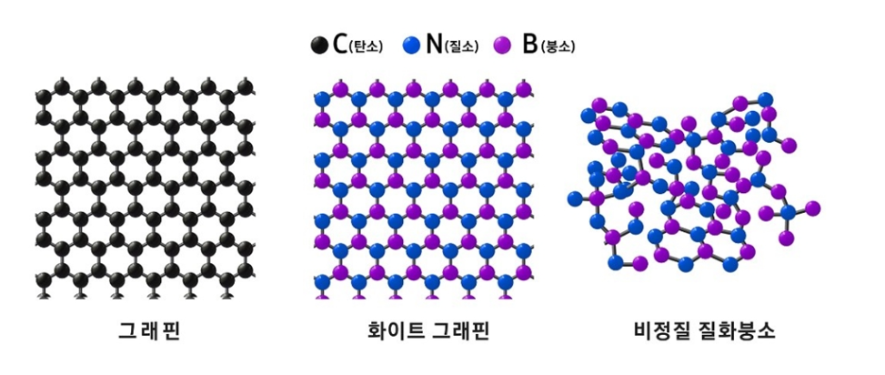 비정질 질화붕소는 화이트 그래핀의 파생 소재로서 질소와 붕소 원자로 이루어져 있으나 정형화돼있지 않은 분자구조를 가져 화이트 그래핀과 구분된다. 또한 반도체를 소형화하기 위한 핵심 요소 중 하나인 유전체로 활용돼 전기적 간섭을 차단하는 역할을 할 수 있다.