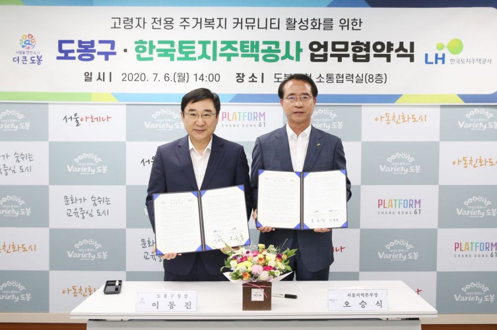 [아시아경제 박종일 기자] 도봉구(구청장 이동진)가 6일 ‘고령자 전용 주거복지 커뮤니티 활성화’를 위해 한국토지주택공사(서울지역본부장 오승식)와 손잡았다.