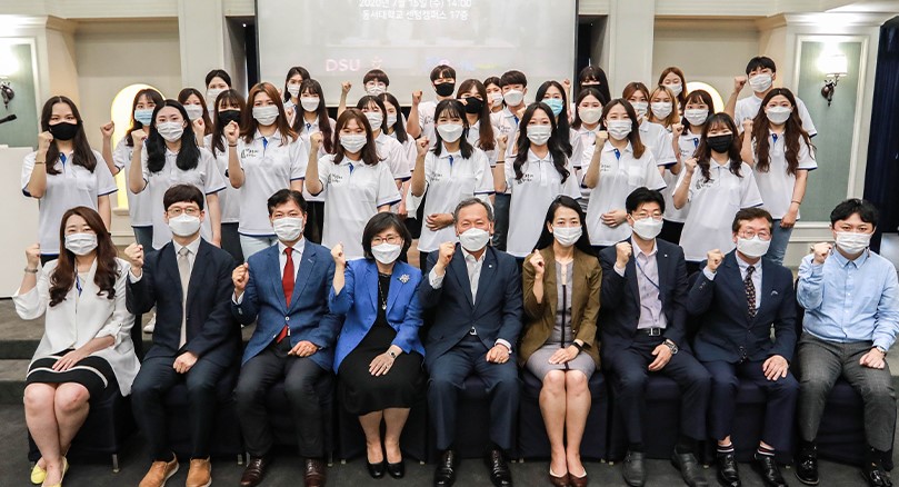 동서대 김정선 총괄부총장, 부산교통공사 박영태 본부장, 부산관광공사 임용묵 실장, 한국관광공사 조윤미 부산울산지사장은 15일 32명의 관광 서포터즈와 함께 동서대 센텀캠퍼스에서 ‘부산관광 서포터즈 누비누비 5기 발대식’을 갖고 서포터즈 활동 개시를 선언했다.