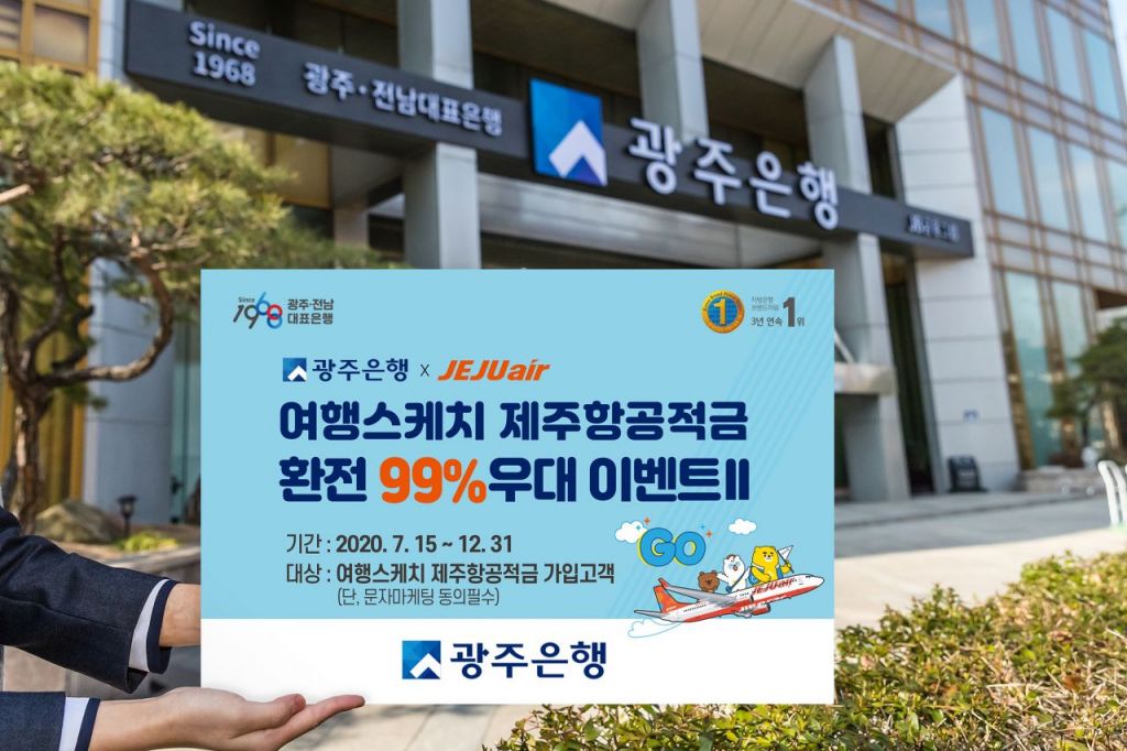 박기원 광주은행 영업기획부장은 “여행스케치 제주항공적금은 ‘여행’이라는 스토리를 결합한 적금상품으로 여름 휴가를 맞아 여행을 계획 중인 많은 지역민들께 조금이나마 도움이 되고자 이와 같은 이벤트를 시행하게 됐다”며 “앞으로도 광주·전남 대표은행으로서 지역민에게 다가가는 맞춤 이벤트를 지속적으로 이어 나가겠다”고 말했다.