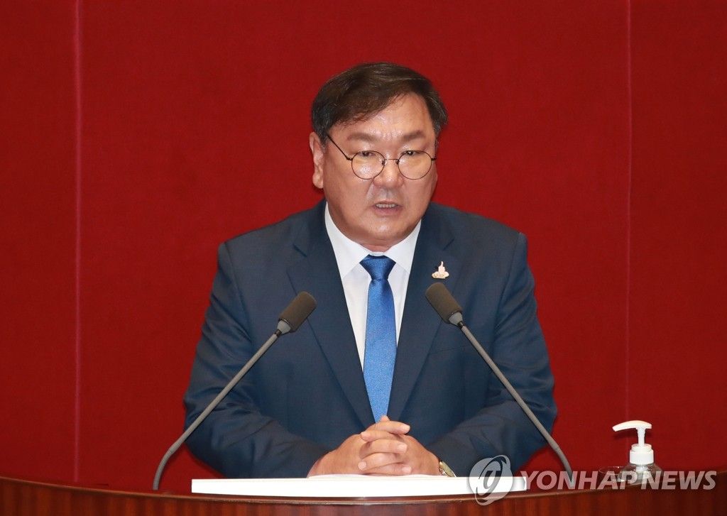 김태년 더불어민주당 원내대표가 지난 20일 국회 본회의에서 교섭단체 대표 연설을 하고 있다. / 사진=연합뉴스