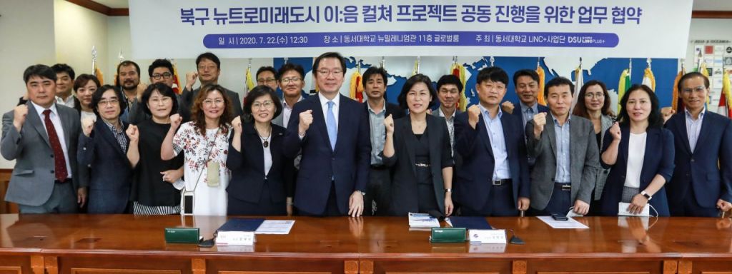 동서대 사회맞춤형 산학협력 선도대학(LINC+,링크플러스) 육성사업단은 22일 동서대 뉴밀레니엄관에서 부산 북구청과 ‘북구 뉴트로 미래도시 이:음 컬쳐 프로젝트’ 공동 진행을 위한 MOU를 체결했다고 23일 밝혔다.
