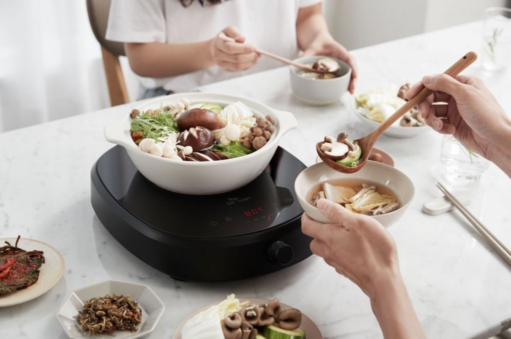 소형 크기에도 최대 출력은 2000W로 3구 레인지에 준하는 화력을 자랑한다는 게 회사의 설명이다. 조리 온도는 다이얼 방식으로 손쉽게 조절 가능하다. 5단계 온도 설정 모드(120~200도)로 각종 요리에 따라 선택해 조리할 수 있다. 80도 '보온' 기능도 갖췄다.