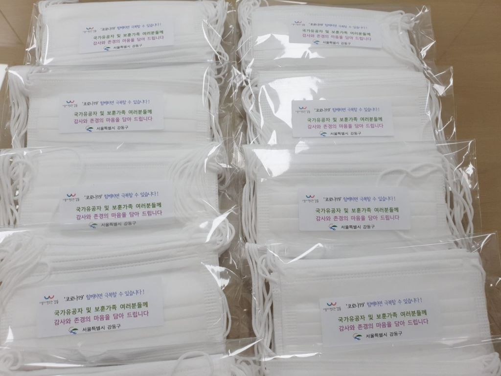 마스크 구입이 힘든 고령의 어르신이 대부분인 국가보훈대상자들의 안전과 건강을 위해 구가 마련한 것으로 강동구 거주 4922명의 국가보훈대상자들에게 여름용 마스크 10장씩을 포장해 우편으로 전달했다.