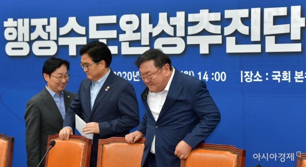 김태년 더불어민주당 원내대표와 우원식 행정수도완성추진단장이 27일 국회에서 열린 '행전수도완성추진단 1차 회의'에 참석하고 있다./윤동주 기자 doso7@