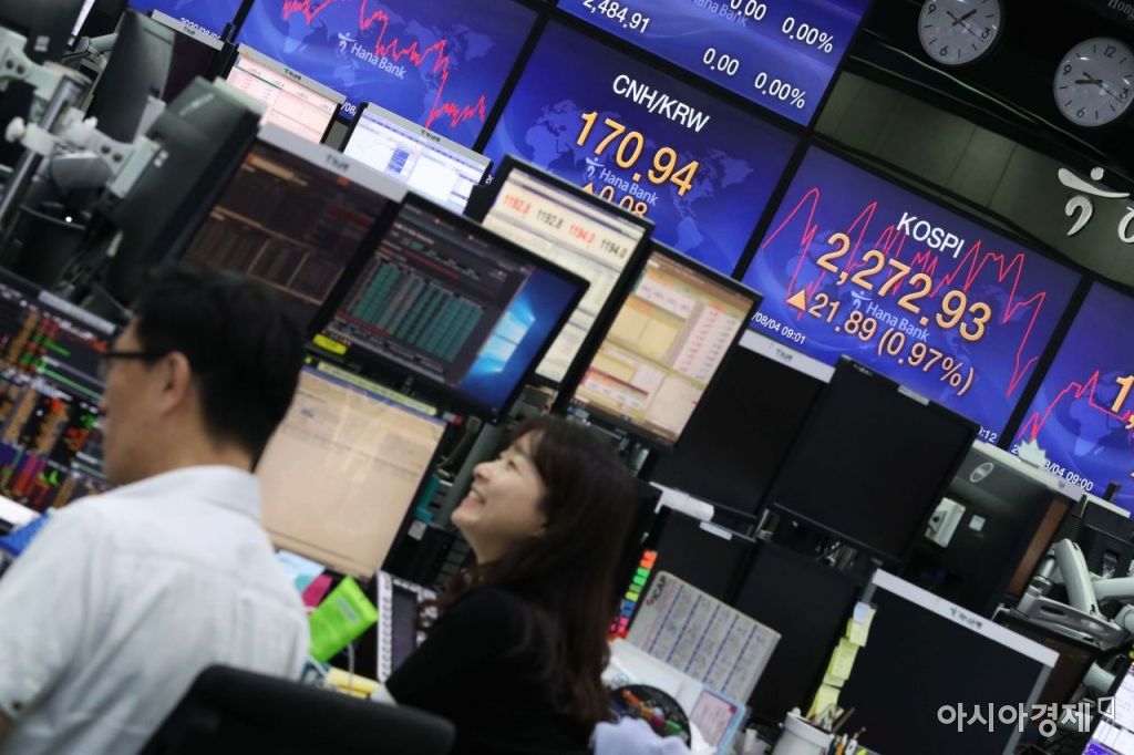 4일 코스피 지수가 1% 가까이 상승 출발했다. 서울 을지로 하나은행 딜링룸에서 딜러들이 분주하게 일하고 있다. /문호남 기자 munonam@