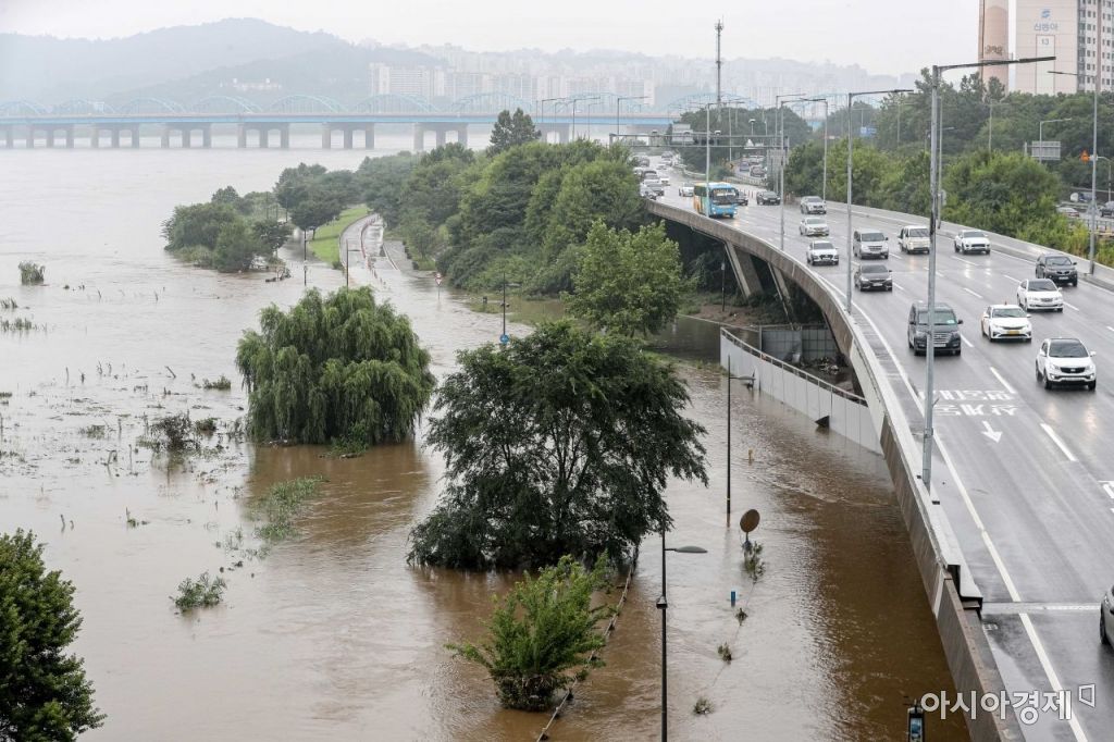 5일 서울 반포한강공원 일대가 수도권 집중 호우로 한강 수위가 상승하며 물에 잠겨 있다./강진형 기자aymsdream@