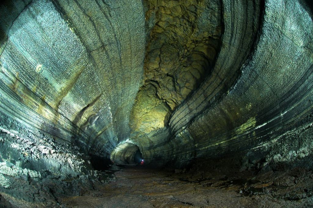 마그마가 닦은 길은 지하 1층과 2층 두 갈래다. 입구는 하나같이 낙반으로 가득하다. 뾰족한 암석 지대를 통과하면 긴 용암선반이 나온다. 벽면을 흐르던 용암이 긴 널빤지처럼 굳어 만들어졌다. 탐험에서 무난한 통로가 돼 준다. 따라 들어가면 바닥을 가득 메운 승상용암이 눈에 들어온다. 용암이 천천히 흐르면서 줄이 여러 겹으로 겹쳐진 것처럼 굳어졌다. 표면에 은백색 광택이 감돌아 경탄을 자아낸다.