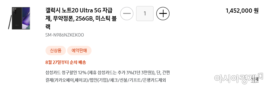12일 업계에 따르면 삼성닷컴과 11번가 등에서 갤럭시노트20 울트라 자급제 모델 주문이 몰리면서 배송 일정이 지연되고 있다.
