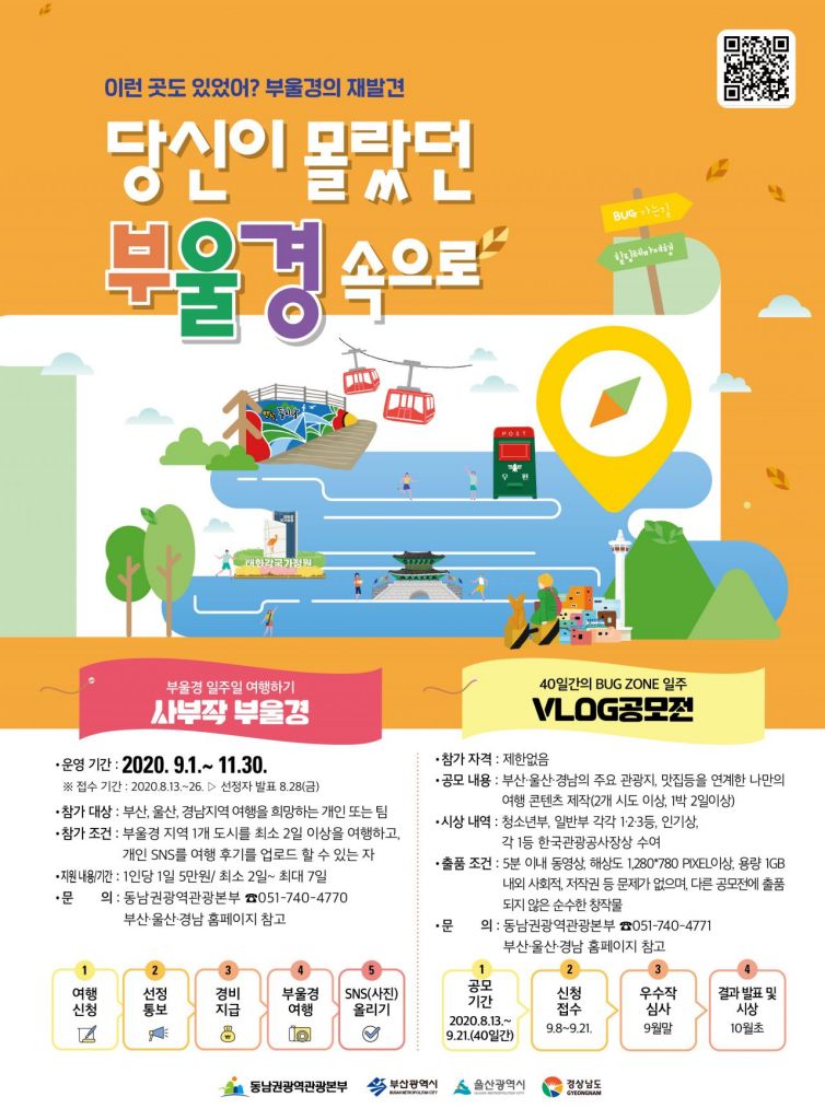 ‘부·울·경 일주일 여행하기-사부작 부·울·경’이 첫째 이벤트이고, ‘40일간의 버그존 일주-브이로그 공모전’도 13일부터 진행한다.