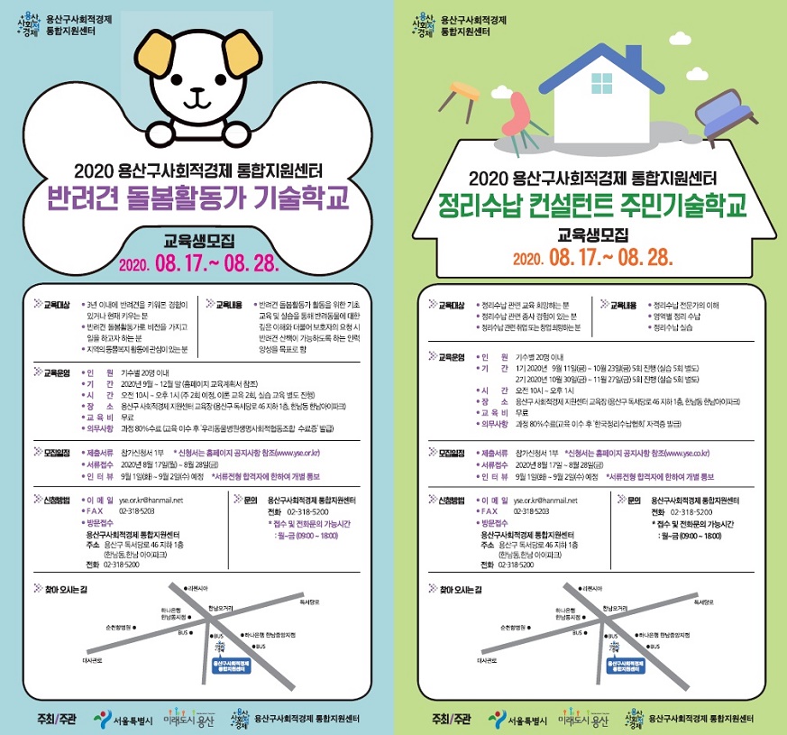 센터는 사업의 출발로 오는 28일까지 반려견 돌봄활동가, 정리수납 컨설턴트 기술학교 수강생을 모은다.
