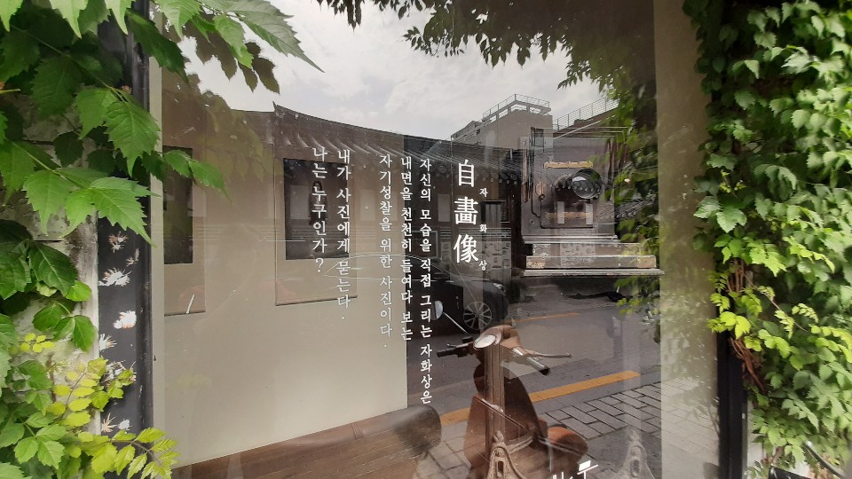 서울 종로구 계동길에 위치한 '물나무 사진관' 외부 전경. 창문에 '자화상'을 소개하는 문구가 쓰여 있다. 사진=허미담 기자 damdam@asiae.co.kr