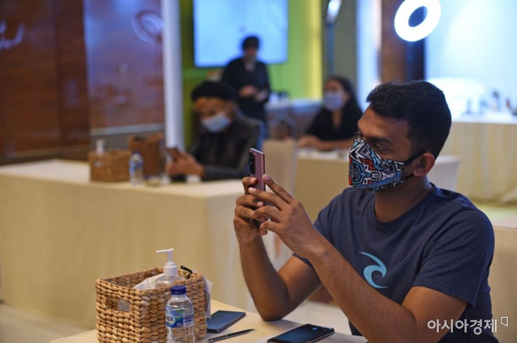 지난 18일 인도네시아 자카르타에서 열린 '갤럭시노트20' 출시 행사에 참석한 현지 기자들이 제품을 체험하고 있다.