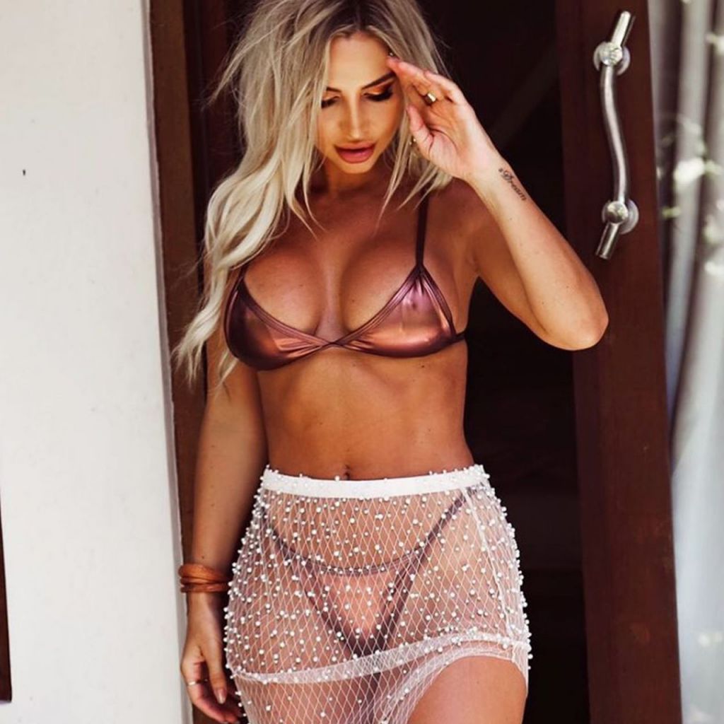 사진 속 그는 비키니 위에 속이 비치는 망사 소재의 스커트를 입고 바닷가 아찔한 몸매를 과시하고 있다.