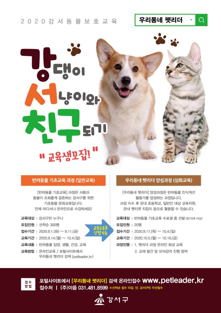 희망하는 구민은 강서동물보호교육 홈페이지나 포털 사이트에서 ‘우리동네 펫리더’라고 검색, 접속한 후 신청하면 된다.