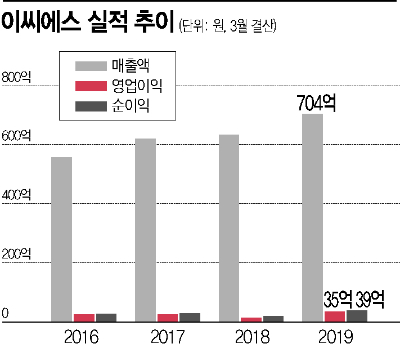 수익성도 개선되는 추세다. 이씨에스는 지난해 35억원의 영업이익을 나타냈다. 직전 해보다 영업이익이 2배 이상으로 증가했다. 올해 1분기에는 8억원의 이익을 기록하며 흑자로 전환했다.