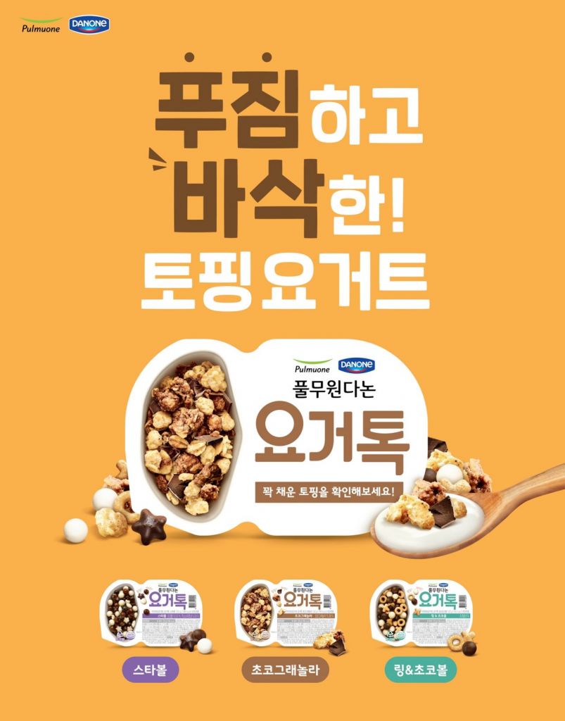 이번에 출시된 ‘요거톡’은 플립(Flip) 형으로 구현된 제품이다. 제품에 요거트와 함께 풀무원다논이 엄선해 조합한 토핑이 담겨 있어 맜있고 간편한 간식으로 남녀노소 모두에게 안성맞춤이다.